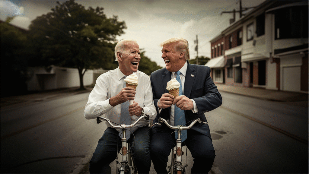 Let’s talk deepfakes. I’m no expert, but creating that picture of Biden and Trump kicking back enjoying the simpler things took about 30 seconds, tops – and that was almost a year ago (so ancient history in the AI world).