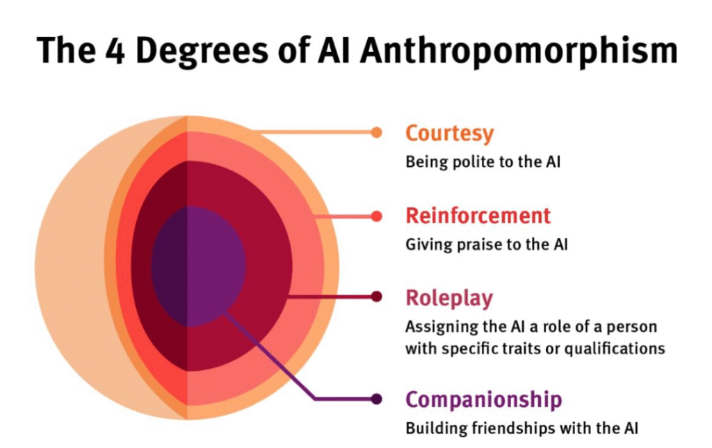 So it turns out the simple act of saying “please” or “thank you” to AI like ChatGPT carries surprising weight, sparked by OpenAI CEO Sam Altman’s revelation of it costing “tens of millions” in computing power. This kicked off massive discussions about the significant environmental and financial costs tied to AI energy consumption – after all, are you polite to your toaster? But there’s nuance here – this also introduces deeper concerns about anthropomorphism – treating AI as human. It turns out that these seemingly harmless courtesies exists on a spectrum (from basic politeness to attempted companionship) and can function as a security flaw, making AI more vulnerable to manipulation (see the excellent How Johnny Can Persuade LLMs from Virginia Tech and Stanford). It goes further though – into the AI effectively hacking us – misleading users (esp. vulnerable ones) into misinterpreting simulated emotions – leading misplaced trust (and so causing users to overlook AI bias or errors) or even emotional connection, with potentially devastating consequences. H/t to Tina Austin for an excellent visual capturing this progression from basic courtesy to emotional connection – a spectrum that says a lot about our evolving relationship with AI systems.
